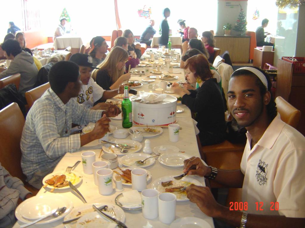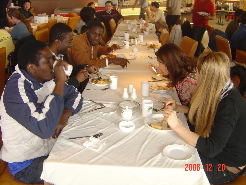 2008年12月20日,william外教、留学生与国际交流处工作人员欢聚一堂,喜迎圣诞。宴会上,国际交流处相关负责人代表学校向外籍师生表达了节日的祝福,亲切地询问了外籍师生们的工作、学习情况,使他们感受到了学校大家庭的温暖。