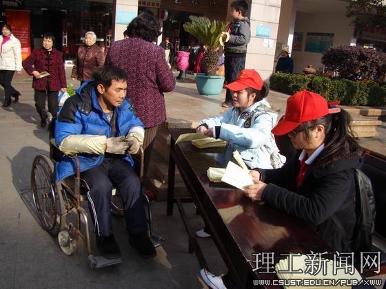 校学生会志愿团一部分志愿者走进新星社区,开展关爱生命、预防甲流宣传、文艺演出等志愿服务活动。在社区工作人员的积极准备和配合下,志愿者着统一服饰,佩戴校徽,开始了精彩的文艺节目表演,吸引了很多社区居民驻足观看:威武强壮的男子武术队的剑术棍棒拳术赢得阵阵喝彩;湘妹子柔情歌唱陶醉全场;手语操暖遍全场;互动环节,拉近了社区居民和志愿者的距离,欢笑充满了整个新星小区。通过文艺表演,志愿者服务的影响在社区迅速传开。据不完全统计,有2000多人来到了志愿者服务地。志愿者与社区请来的医务人员随即开展关爱生命、预防甲流的宣传和咨询活动,向社区居民发放了包含如何预防甲流的宣传资料1000多份,医务人员和志愿者接受咨询者500多人次。
