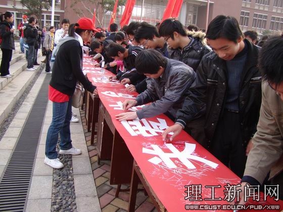 八时整,全校志愿者齐聚云塘校区文化广场,校学生会志愿团团长欧阳相喆进行了富有激情的动员,志愿者代表做精彩发言后,全体志愿者面向校旗和团旗进行庄重的宣誓;随后举行了所有志愿者的签名仪式,全体志愿者在鲜红的条幅上郑重的签下了自己的名字。启动仪式后,全校各志愿者组织奔赴事先联系好的服务点开展志愿者服务活动。