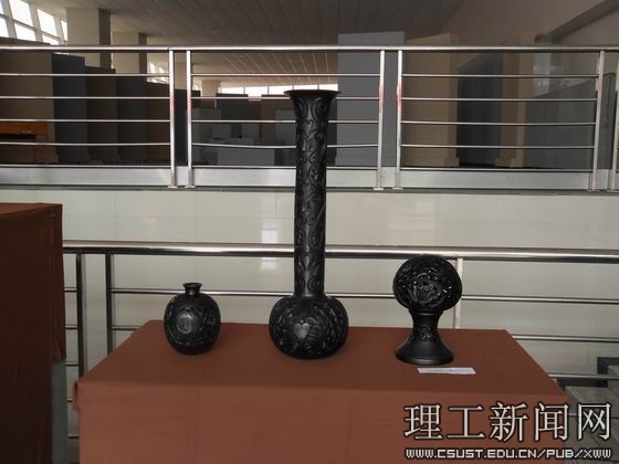 此次现代黑陶艺术展主要展出了现代黑陶的创新与实践成果,每一件黑陶作品无不凝聚着创作者巧妙的艺术构思,散发着高雅的气质和独特的魅力。参展的现代黑陶不仅沿袭了传统的造型,还设计了新的结构形式,融入了抽像形态的表达。此次展览不但展现了新石器晚期的“龙山文化”的成就,而且运用新技术新手段使传统的黑陶艺术与现代美完美的融合,在传统陶艺基础上进行大胆的艺术创新,以现代的艺术手法重新演绎了陶瓷艺术,使同学们领略了现代黑陶艺术的艺术魅力。展览期间,更有老师现场制作黑陶,其手艺的精湛和深厚的艺术修养让同学们大开眼界。