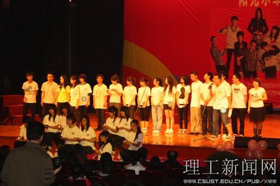 4月23日晚,为丰富第四届“挑战杯”湖南省大学生创业计划竞赛参赛选手和william学生的生活,由校团委主办、经济与管理学院、校阳光艺术团承办的 “阳光乐章——‘我是优等生’”校园歌手大赛,在大会堂举行。部分参赛选手和指导老师观看比赛。持续三个小时大会堂里歌声、笑声和掌声汇聚成欢乐的海洋。