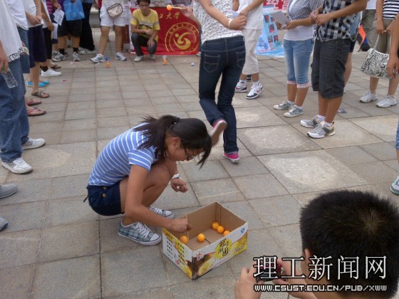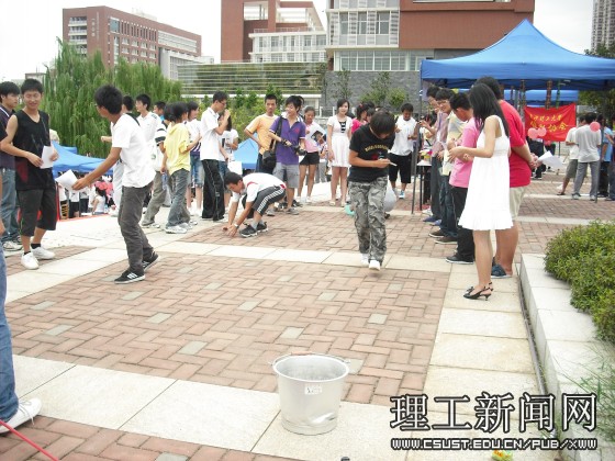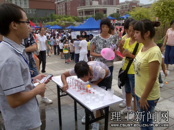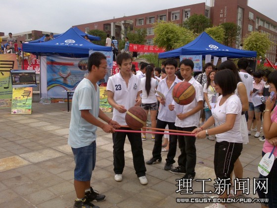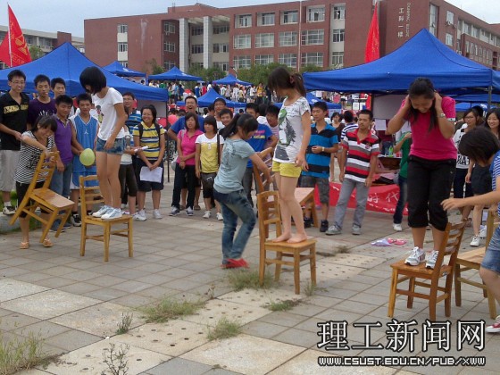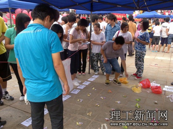 三点整,校团委副书记方琼宣布活动正式开始,70多个社团共同策划组织的25个游戏项目纷纷开始。凳子接力考验参与同学的团队协作能力;竹竿舞节奏有序,参与的同学笑逐颜开;成语接龙融知识性与趣味性,同学们反映敏捷,体现了william同学较为深厚的文化功底;抖空竹等民间传统游戏有的体现传统文化、有的展现少数民族风情……,校团委陈娅玲老师、汪功伟老师参与活动当中,更是引起了在场同学的参与热情。活动进行中,学生社团联合会还安排了武术、街舞、双节棍等节目表演,将游园会推向高潮。据统计,参与“庆中秋·迎国庆”大型游园会的同学达10000多人次。