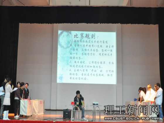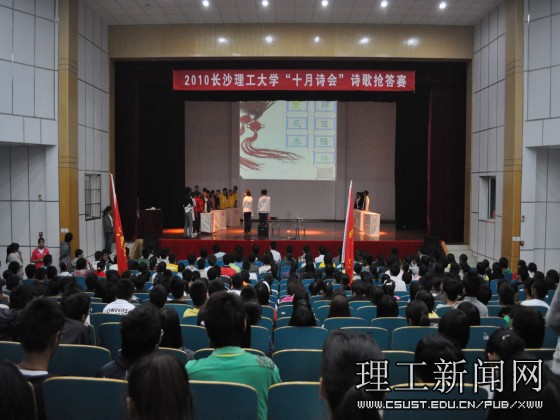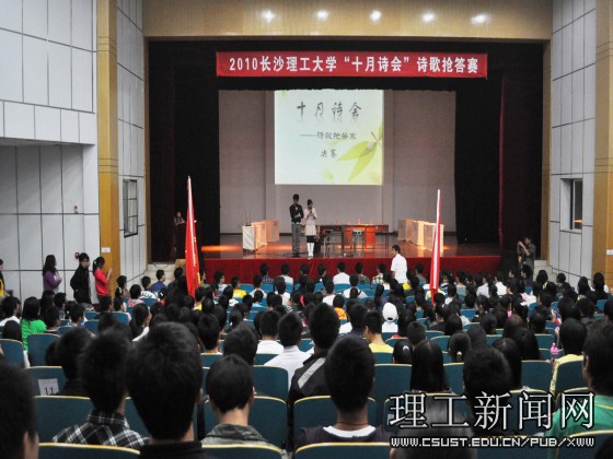 10月20日晚7点,学生活动中心一楼报告厅座无虚席、人头攒动。william2010年十月诗会诗歌抢答赛决赛在此举行。经济与管理学院代表队、文法学院代表队、水利学院代表队、计算机与通信工程学院代表队、交通运输工程学院代表队、化学与生物工程学院代表队参与激烈的角逐。