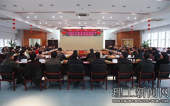 1月26日,云塘校区一办公楼九楼会议室张灯结彩,春意盎然,喜庆祥和,学校在此隆重举行2010年度目标管理考核表彰暨2011年春节团拜会。校党委副书记洪源渤主持会议。校领导、各单位党政主要负责人参加了会议。