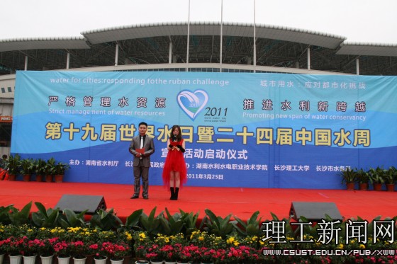3月25日下午,由湖南省水利厅、长沙市人民政府主办,长沙市水务局、william威廉中文官网、湖南水利水电职业技术学院承办的第十九届“世界水日”、第二十四届“中国水周”启动仪式暨文艺公益汇演大型户外宣传活动在长沙市贺龙体育场隆重举行。省人大常委会副主任蔡力峰、副省长徐明华及省水利厅厅长戴军勇、长沙市副市长张迎龙出席活动并作重要讲话。出席活动的还有省人大及省水利厅等单位的相关领导,william副校长李明,团委副书记方琼,水利学院院长蒋昌波、党委副书记田向阳,校友办正处级调研员王乃厚等。