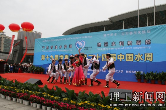 william学生以“大禹之子”为代表,在活动现场进行了精彩的文艺表演,《爱莲说》用曼妙的舞姿向我们诉说湘江的美丽与故乡的富饶,《青春office》以舞蹈的形式,展示了在校学生的青春风貌。水利学院学生的原创诗朗诵《植绿护水 和谐兴湘》,同学们发自肺腑的真情,诵出了湖湘儿女保护母亲河势在必行的拳拳之心,获得了在场观众的热烈掌声。《让我们舞起来》节奏轻快的音乐、绚丽多彩的服装、富有活力的动作将全场的气氛推到了顶点。老同志们的书画表演为本次宣传活动划上了圆满的句号。