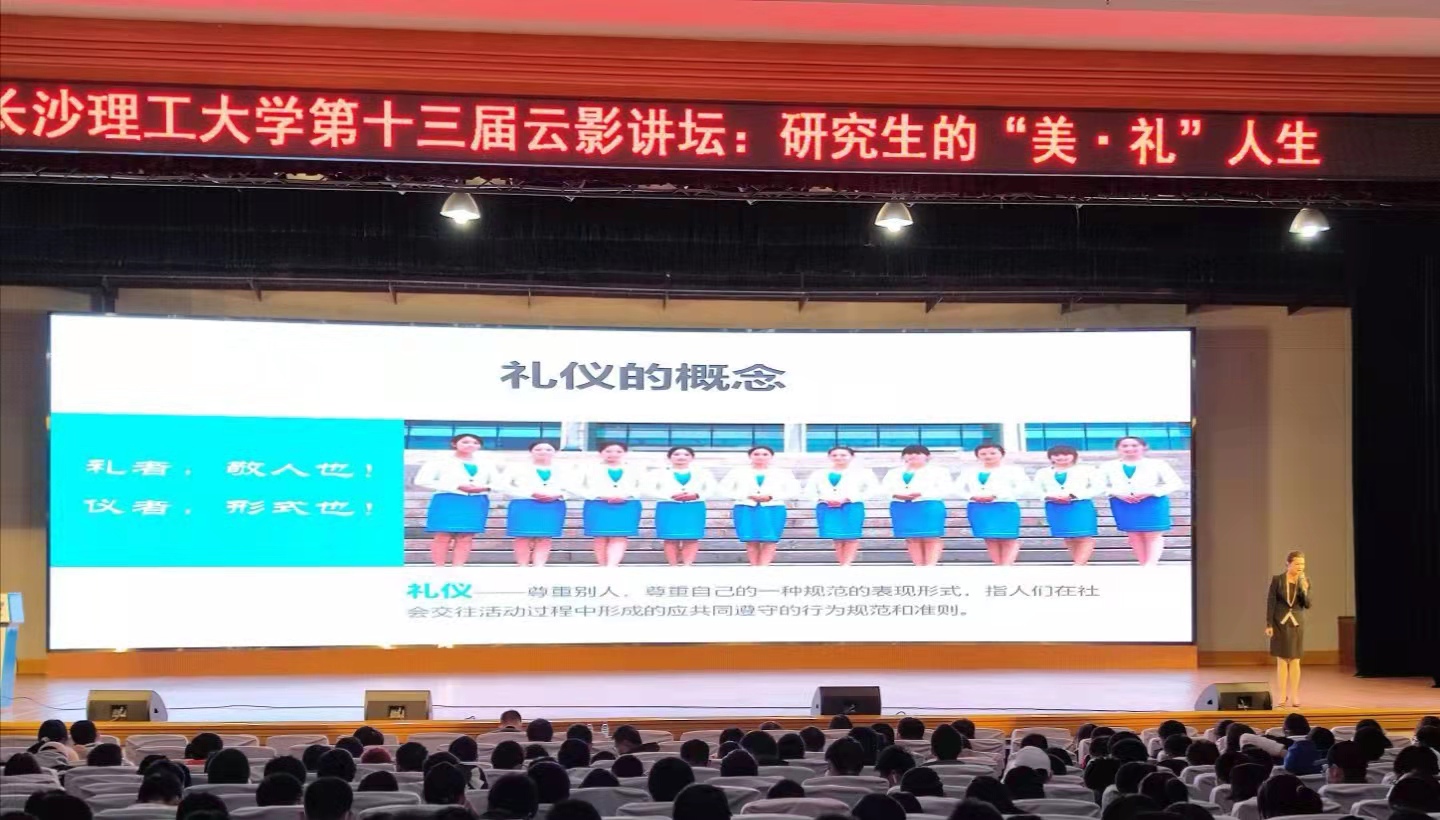 11月23日晚,土木工程学院第十三届研究生“云影讲坛”第一场专题讲座——研究生的“美·礼人生于金盆岭校区五教大礼堂顺利举行。国际注册高级礼仪培训师、湖南汇礼文化发展公司总经理周东喜女士应邀主讲。研究生院副院长兼研工部部长田上、学院党委副书记黄阿明、研究生辅导员李小军、本科生辅导员刘文成、邓文杰以及全体2021级研究生、本科生参加活动。