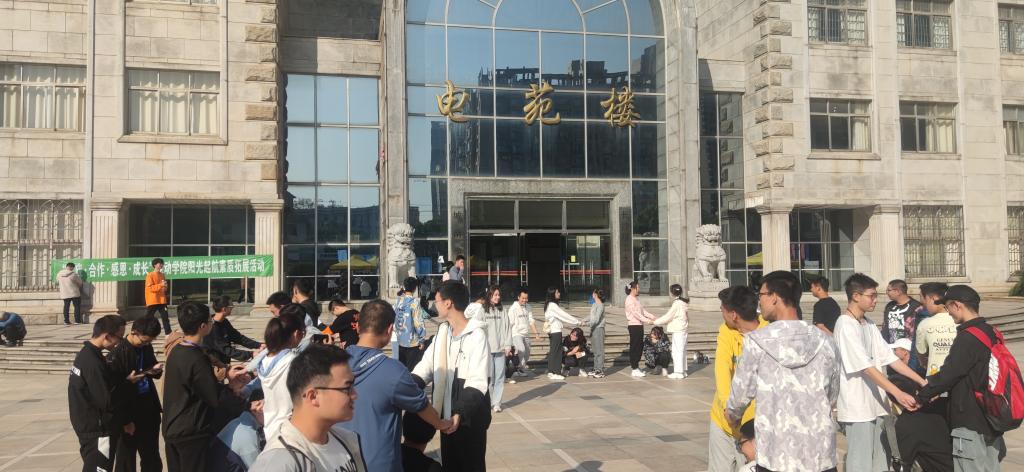 活动开始前,彭博为同学们讲解了心理活动的意义与目的。在“大树和松鼠”活动中,同学们共同扮演松鼠和大树,搭建心灵树洞,不断选出新的流浪松鼠和落单大树进行才艺展示;紧接着开展“滚雪球”游戏,同学们先进行自我介绍,然后不断重复彼此的姓名与爱好,进一步熟悉对方;本次素质拓展在“相亲相爱一家人”中落下帷幕,各小组自行设计队标,展示队歌、队名与口号,在创新和尝试中深入了解对方的特点。