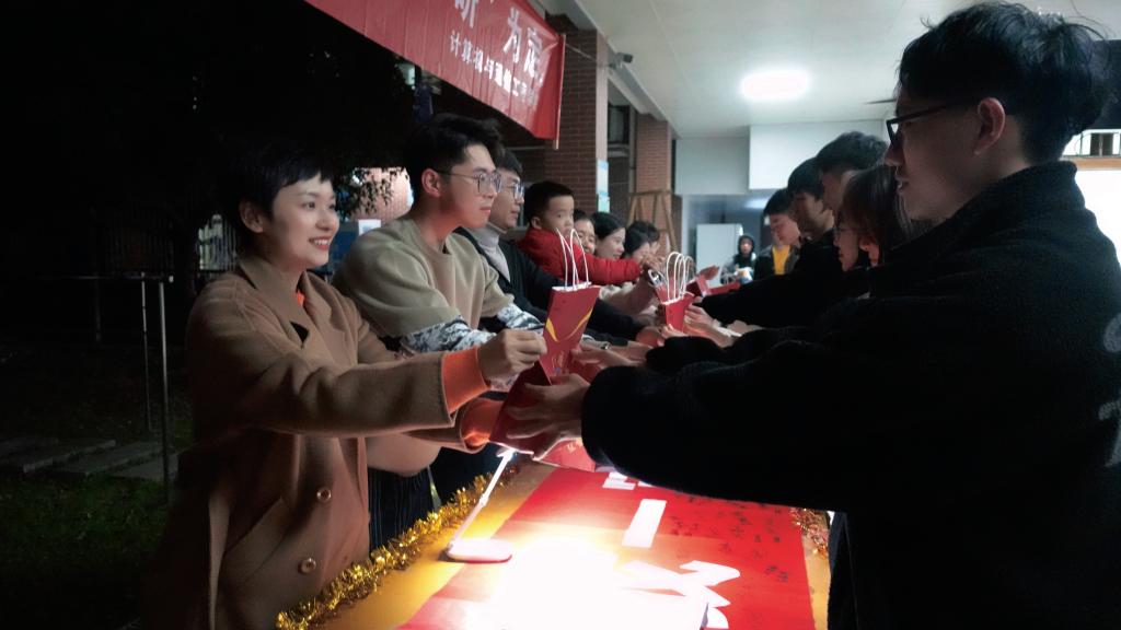 为帮助考研学子加油鼓劲、舒缓压力、坚定信心,12月2日晚,计通学院携手万兴科技集团股份有限公司为考研学子发放330余份考研祝福包。“棒”上有名、“包”你成功、运气“旺旺”、计通学院特制专属福袋和明信片上学弟学妹们加油鼓劲的话语与可爱的涂鸦,每一处细节、每一项元素都承载着学院对考研学子的满满心意,殷殷祝福。