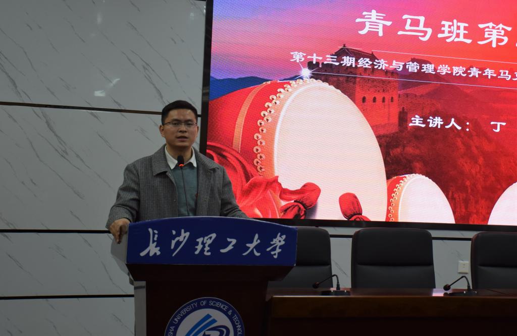 12月2日晚,经济与管理学院第十三期青年马克思主义者培养工程第二次理论课程在金盆岭校区四教报告厅举行。院党委书记丁丹主讲,院团委书记何涛,团学会主席团成员和青马班全体成员参与本次课程,本次课程由团学会组织部郭瑶主持。