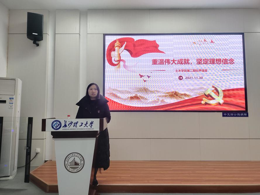11月30日下午,土木学院学生党总支在工二A304举办第二期“砼声强音”理论学习交流会,主题为“重温伟大成就,坚定理想信念”,活动由桥梁党支部蒋镐宇主持,学生党建辅导员刘文成和本科生和研究生各党支部代表70余人参加。