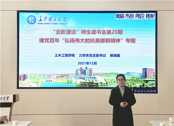 12月4日下午,土木工程学院力学系师生在工科二号楼学生发展中心,以“赓续抗美援朝精神血脉”为主题,开展全国样板党支部特色文化品牌活动之“云影漫谈”师生读书会第20期。学科建设与发展规划处副处长赵冰、学院党委副书记黄阿明、副院长付果,力学系师生党支部成员及50余名力学系学生代表参加了此次读书会。