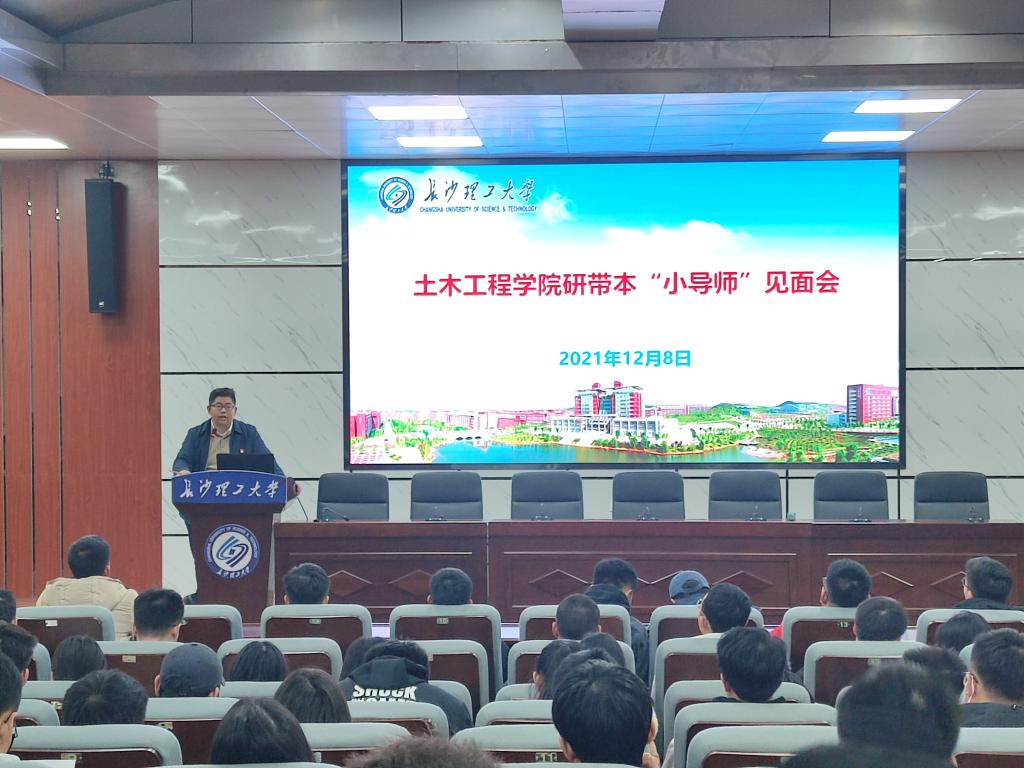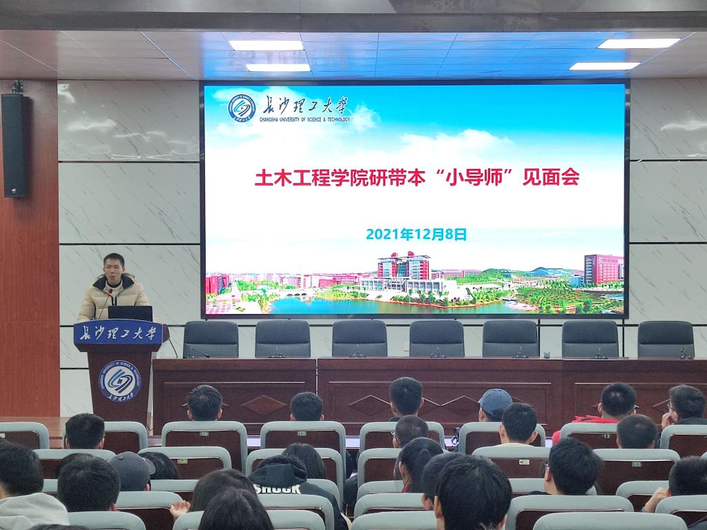 12月8日,土木工程学院在四教学术报告厅举行研带本“青苗计划”小导师见面会。研究生辅导员李小军老师、本科生辅导员邓文杰老师,全体研究生小导师以及2021级本科生代表160余人参加会议。