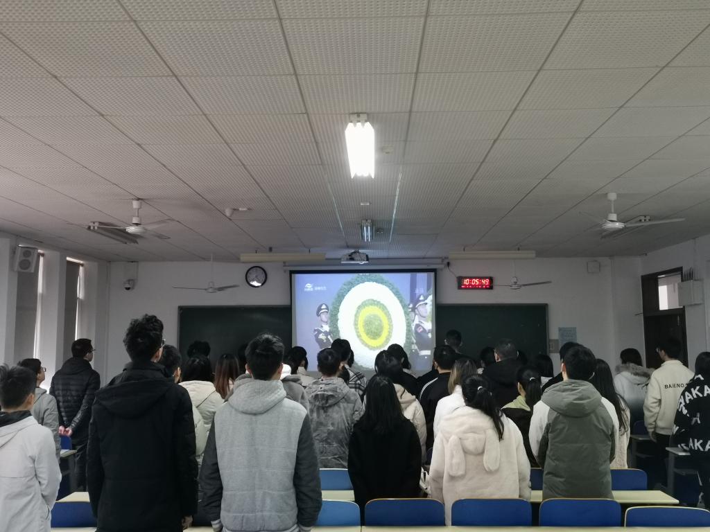 “在84年前的今天,三十多万同胞遇难,今天我们铭记历史,共同祭奠罹难同胞!”纪念活动中,支部党员共同观看了南京大屠杀死难者国家公祭日仪式直播,悼念遇难同胞。全体起立高唱国歌,“前进!前进!前进!进!”,洪亮的声音回响在教室上空。