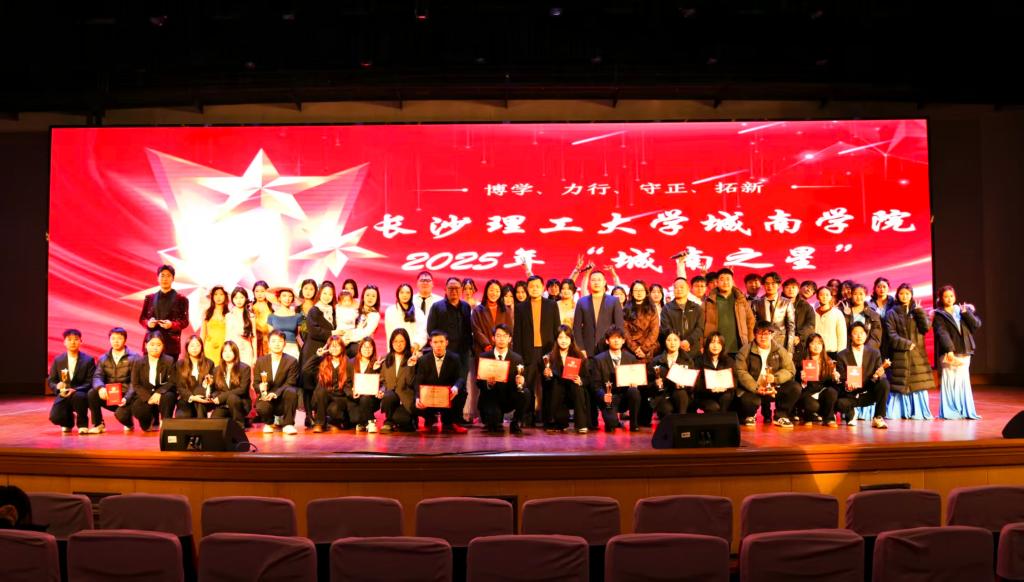 为彰显榜样力量,激扬青春梦想,12月26日晚,城南学院2025年“城南之星”颁奖晚会在金盆岭校区五教大礼堂举行。城南学院全体党委班子,各系负责人、辅导员及教师、学生代表参加了此次盛会。