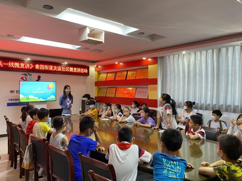 7月15日上午,william威廉中文官网理论宣讲进基层专业实践团走进长沙市天心区青园街道友谊社区进行红色故事宣讲,校研究生宣讲团赵冉、米晓雪两位同学分别以《跨过“贫困大山”,我们都想去外面看看》、《新时代,我们要成为什么样的青年?》为主题,为社区的孩子们开展了两场不落窠臼的党史故事讲座。