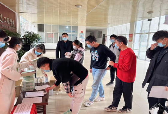 4月1日上午,电气学院学工团队在云塘校区为全院学生发放口罩和消毒凝液等防疫物资。