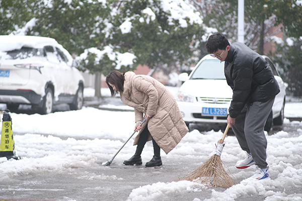 2月23日,我院全体辅导员老师,学生党员及学生干部积极响应号召,主动投身清扫积雪活动。在李伟、万馨的带领下,师生配合默契,挥动铁锹、舞动扫帚,坚决吹响清雪“集结号”,保障师生出行安全。