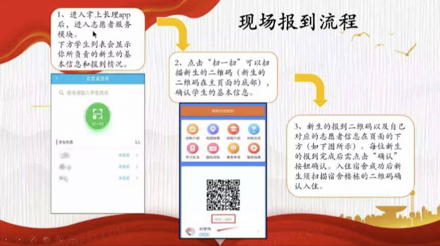 黄慧群首先就迎新工作作简要说明,后从报到流程、报到说明、注意事项及常见问题解答为迎新志愿者进行详细介绍。会议第二项,谭方林对身份核对、疫情防护措施及防诈骗等方面提出要求,希望志愿者和新生在迎新过程中严格落实防疫政策。会议第三项,王志亮充分肯定了志愿者们的积极性,也希望志愿者在迎新过程中展现责任与担当,从礼貌礼节、言行举止、着装要求等细节出发,强调为新生树立良好的形象,同时从核对身份、协助新生入住等为志愿者理顺报到流程。会后,志愿者进行充分讨论,提出问题疑惑,两位老师一一进行了解答。