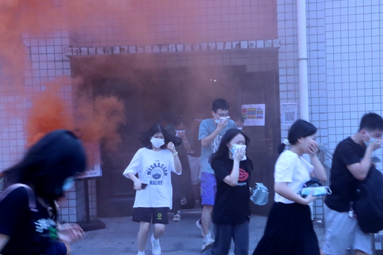 最后,普消消防安全宣传服务中心刘铁华教官为同学们讲解疏散逃生实用知识,并现场进行了演练。