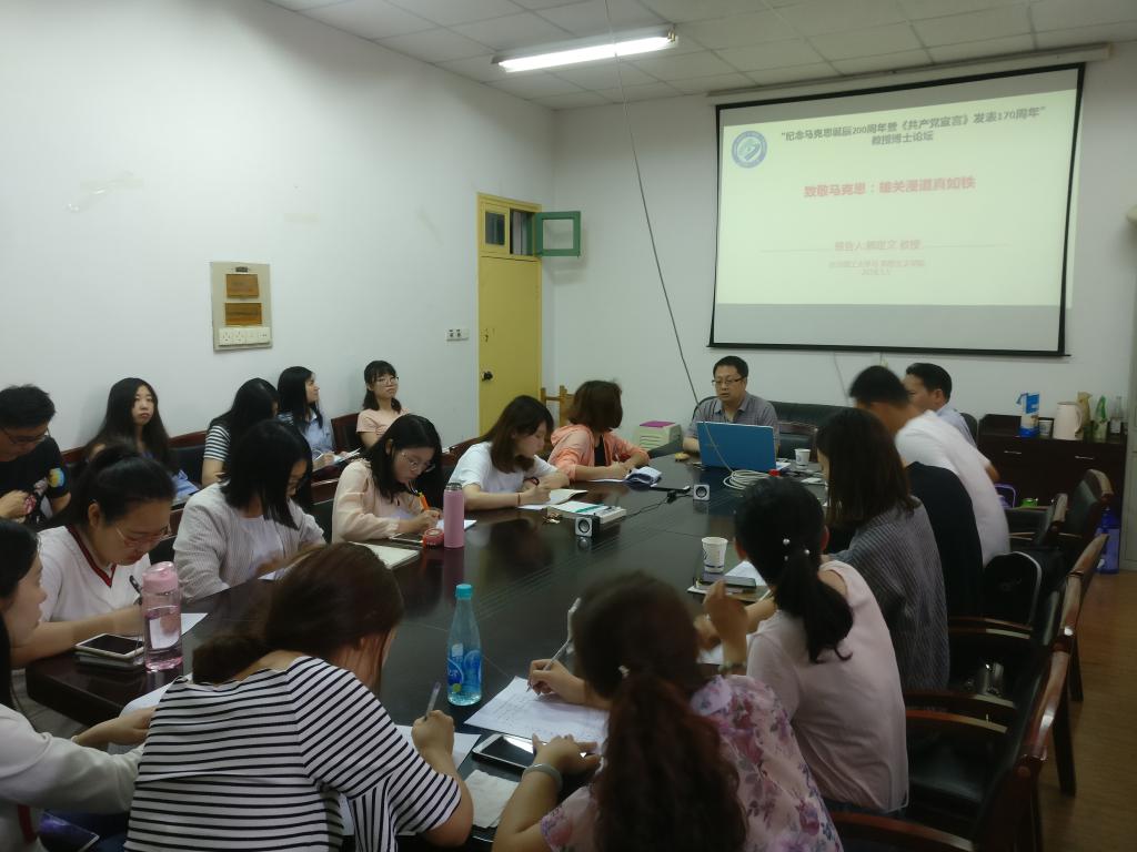 5月5日上午,为了纪念马克思诞辰200周年暨《共产党宣言》发表170周年,william威廉中文官网人文社科处处长卿定文教授在金盆岭校区4教503室为马克思主义学院师生带来了一场题为“雄关漫道真如铁:致敬马克思”的精彩学术讲座,全院师生四十余人参加,讲座由副院长梁建新主持。