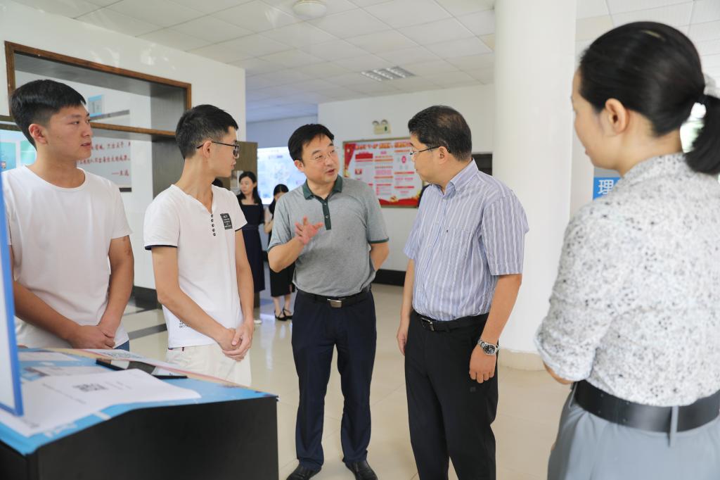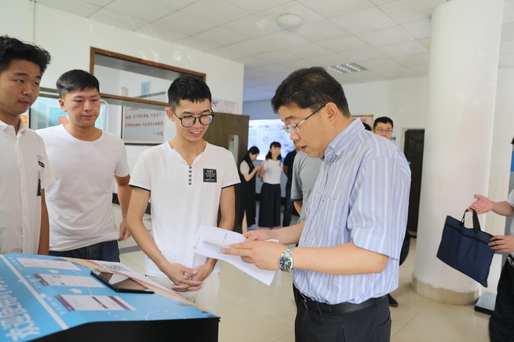 张文斌一行来到计算机与通信工程学院,参观了邹勇松所在的学生创新实验室,与邹勇松和他的老师、同学进行了交谈,并详细询问了邹勇松现在的身体状况,了解了他的学习、科研、生活情况,亲自试用了邹勇松发明的共享打印机,认为共享打印机有创意,可推广。