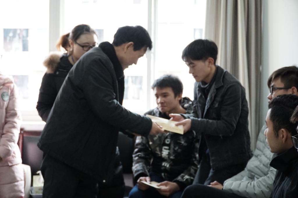 最后王乃厚、殷东林为受助学生发放助学金,并合影纪念。