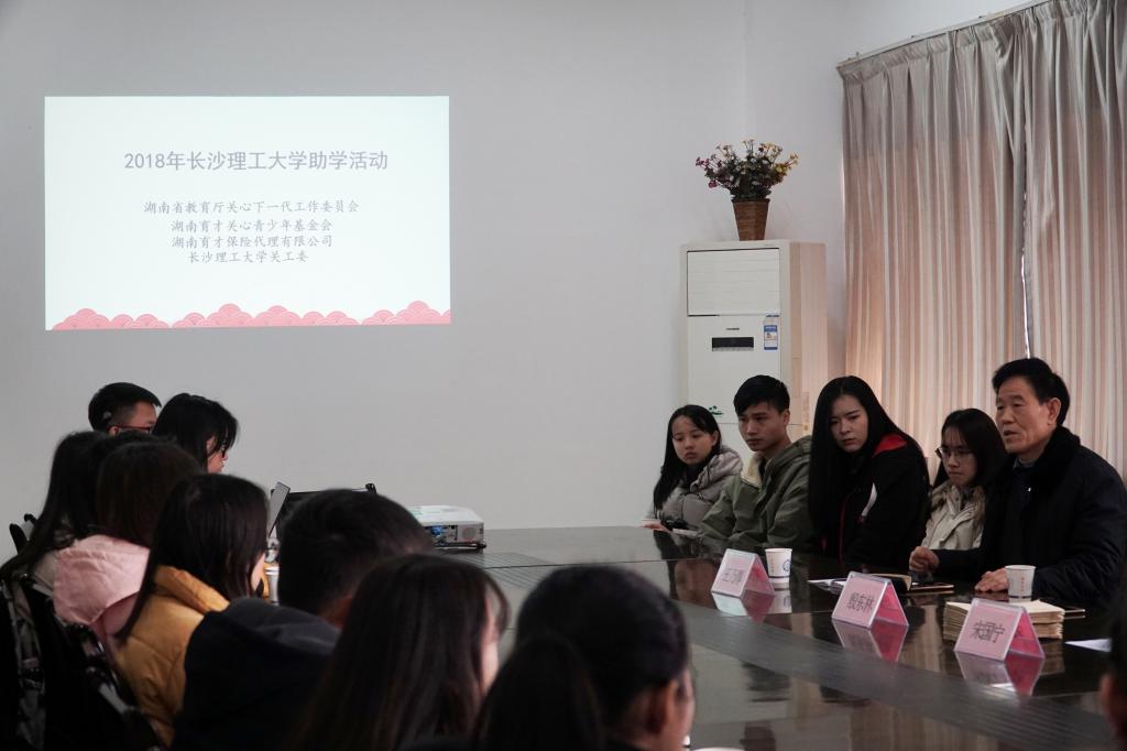 1月9日下午,2018年“湖南省教育厅关心下一代工作委员会、湖南育才关心青少年基金会、湖南育才保险代理有限公司”联合捐资助学活动于二办B404顺利举行。校关工委常务副主任王乃厚,育才保险代理有限公司驻william代表殷东林、学生资助管理办公室主任宋国宁参加。活动由宋国宁主持。