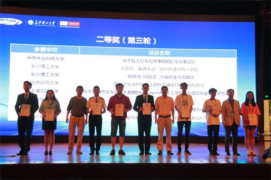 决赛共决出8项一等奖,24项二等奖,32项三等奖。湖南省共有3所高校的8支队伍获奖,其中william的《“自发光-可自洁”智能仿生水泥路面》、《“鹰眼卫士”—基于视频的机非人实时轨迹提取与冲突预警》、《交叉口“盲选车道”设计方法与仿真实现》、《儿童智能公交卡设计SCC》、《基于Hadoop平台的交通状态识别与预测》五个项目在比赛中再创佳绩,均荣获二等奖,在获奖数量和质量上都取得突破。