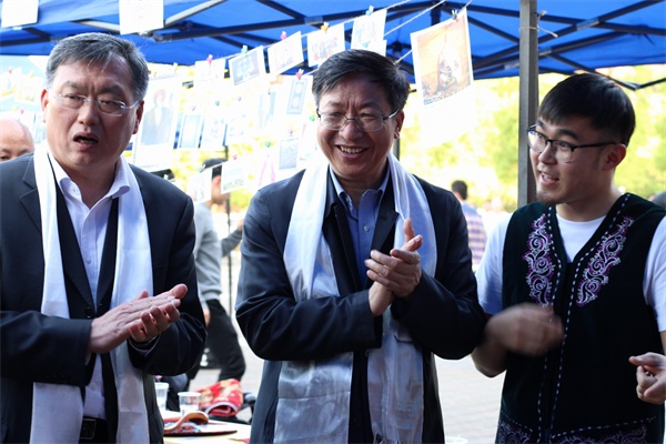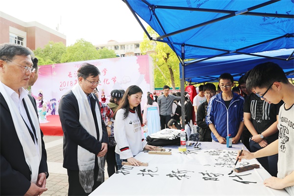 4月17日下午,2018年民族文化节在云塘校区举行。本届文化节活动的主题为“中华手拉手 拥抱新时代”。新疆驻湘工作组党委书记、组长石建,新疆驻湘工作组党委副书记、内派教师协调站站长刘忠革,新疆驻湘工作组党委办公室主任朱守水,新疆驻湘工作组成员沙比提·吐尔逊、努尔斯曼古丽、周鹏,校党委书记付宏渊,副校长谈传生,学校各职能部门领导参加了此次活动。