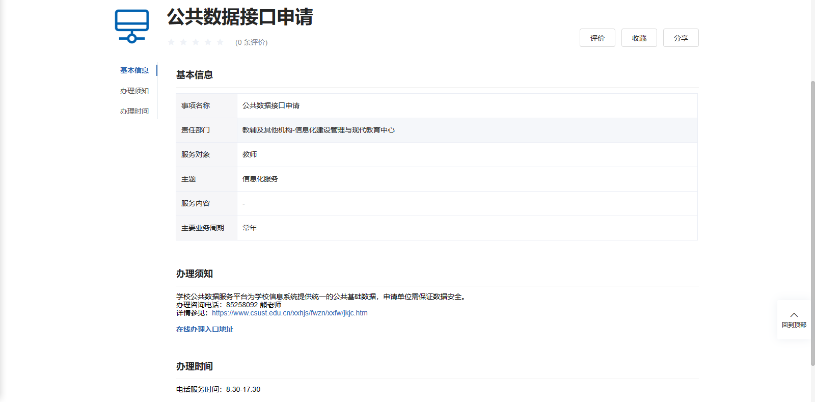 3.服务规则:学校公共数据服务平台为学校信息系统提供统一的公共基础数据,申请单位需保证数据安全。
