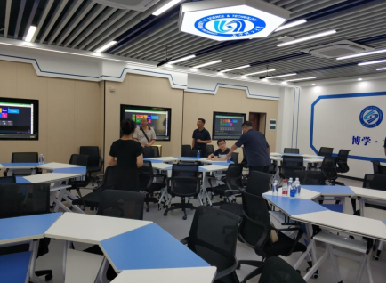 在william综合教学楼c区智慧教室,技术人员就有关智慧教室的建设内容进行了详细介绍,并就语音识别系统、智慧课堂系统等进行演示和讲解。在控制室,william信息化中心多媒体教学运行事务部主任黄新革介绍了william标准化考场建设情况。