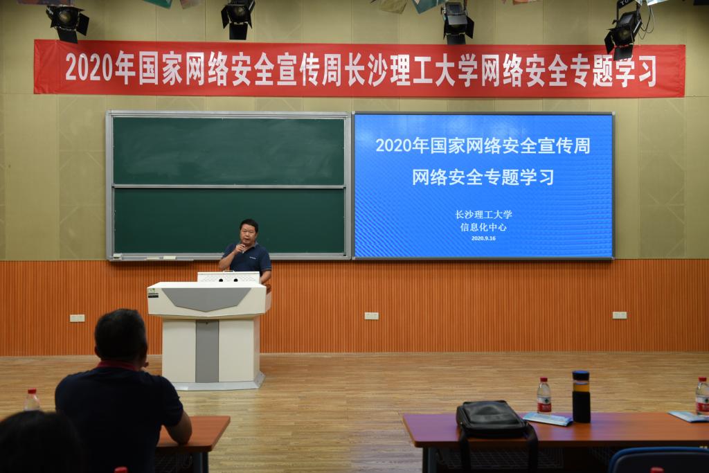 活动第一阶段是专题学习。信息化中心副主任王朗首先介绍了2020年国家网络安全宣传周相关背景知识。接着他围绕习近平总书记关于网络强国的重要思想、习近平总书记对网络安全工作“四个坚持”的重要指示、《网络安全法》等重点内容进行了导学。最后,他结合学校2020年网络安全工作情况,重点分析了william在网络安全方面存在的隐患和弱项,并就下一步如何开展网络安全工作,提出了校园网络安全工作要常态化、规范化、一体化的建议和设想。