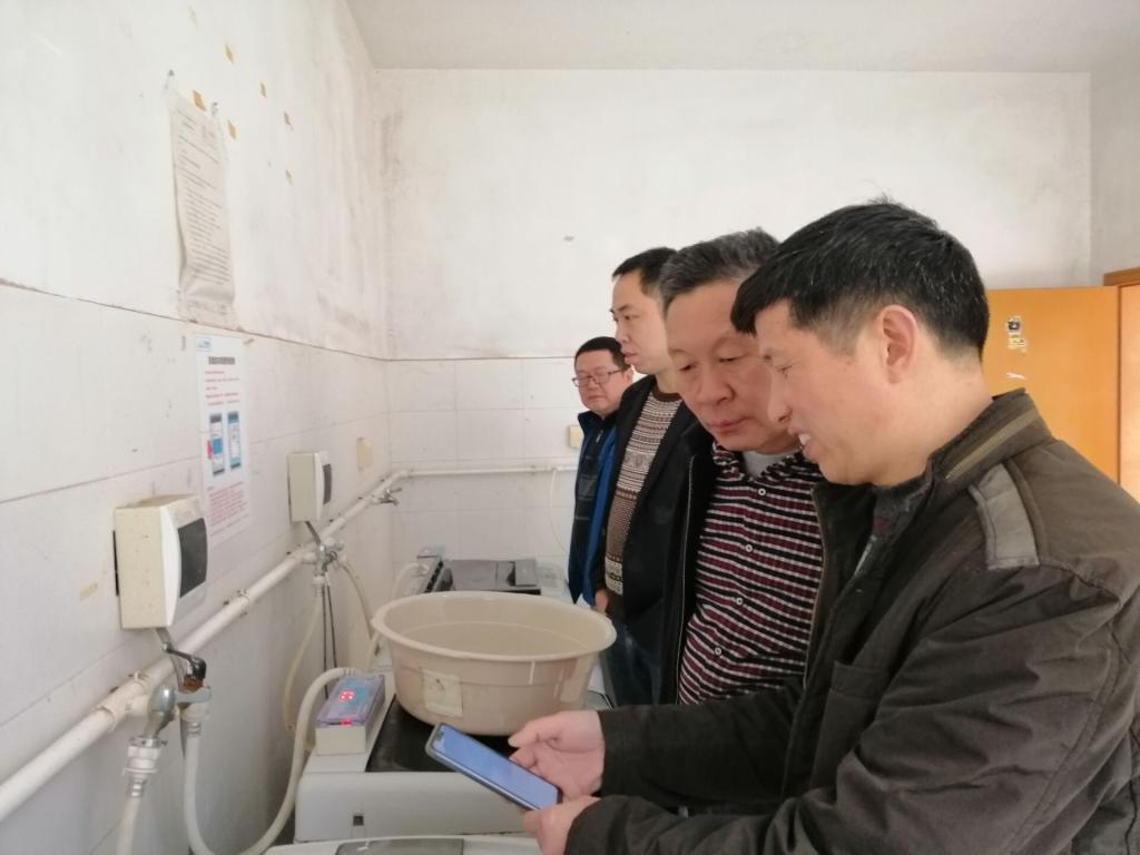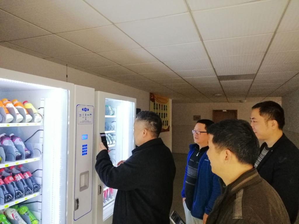 陈赟一行先后到了弘毅轩一、二栋,现场测试了饮用热水机、自动售货机、自助洗衣机等合作经营项目设备的微信支付情况。在弘毅轩一栋,陈赟等深入宿舍与学生进行了面对面交流,详细查看了洗澡热水支付系统使用情况,并询问了学生对宿舍洗澡热水项目提供的各种使用方式的意见。在弘毅轩二栋门口,陈赟向正在作整改施工的直饮水项目施工人员进行了整改情况问询,要求务必尽快整改到位。