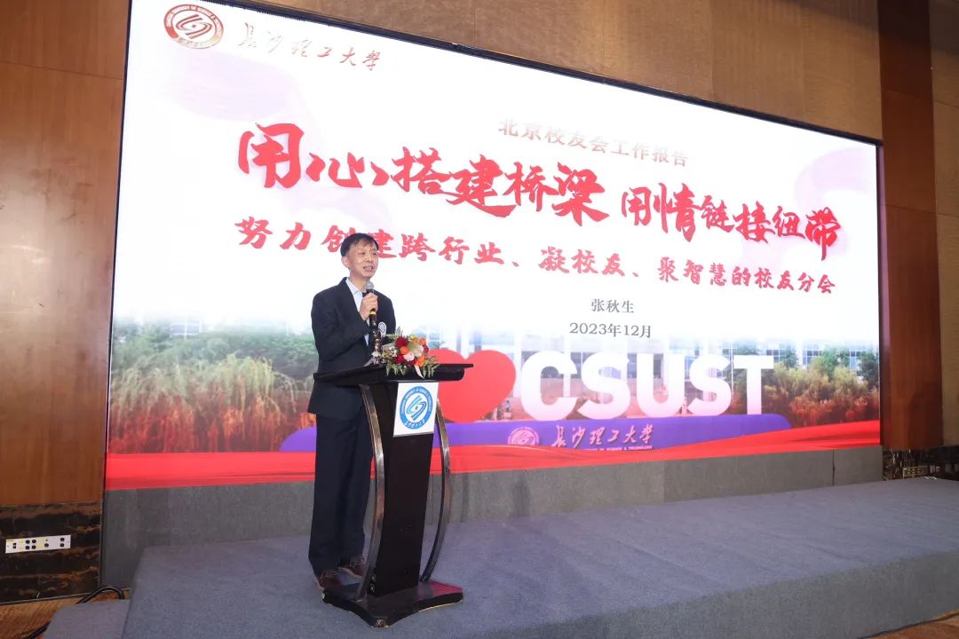 在北京校友高峰论坛上,91级校友吴春耕以“奋力加快建设交通强国,努力当好中国式现代化的开路先锋”为题、78级校友杨亚以“数字化技术与能源电力系统的深度融合"为题、83级校友杨珊华以“世界一流企业与世界一流财务”为题、博士校友陈重以“加强校企合作共建,一带一路’”为题、05级校友祖象欢以“借鉴创新型服务平台,打造高质、高效、高凝聚力的技术研究院”为题分别作了报告。
