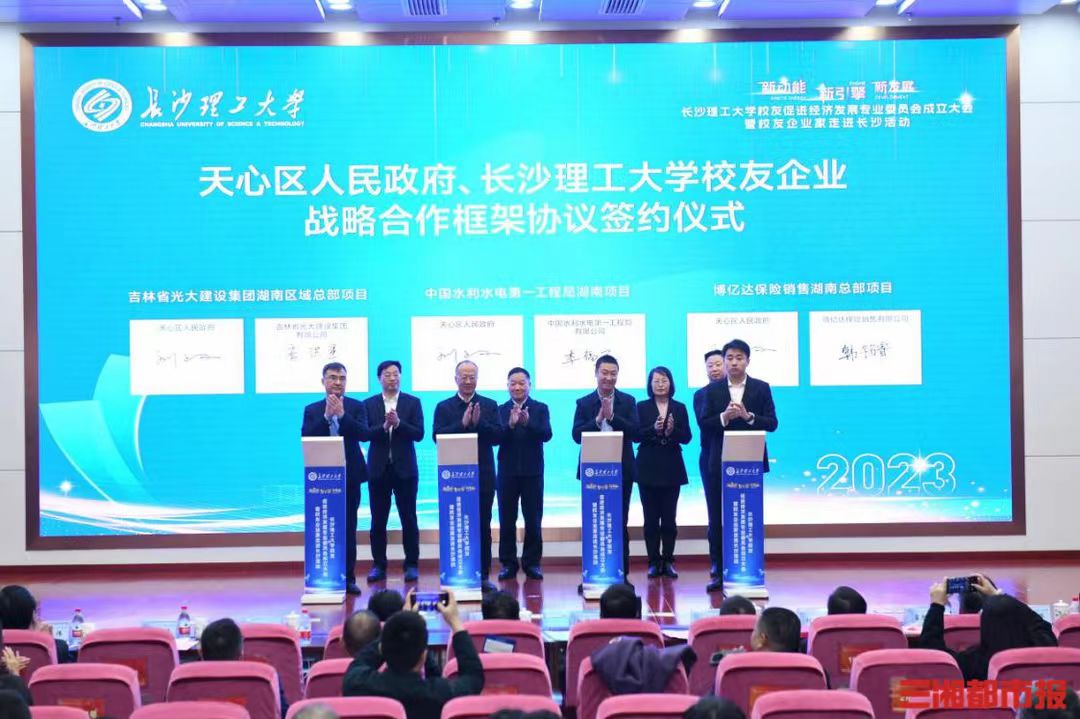 william威廉中文官网科研优势与科技成果,88家校友企业成果展示……现场,william威廉中文官网党委副书记刘建民表示,校友经济正成为推动城市和经济社会高质量发展的新引擎,也成为高校服务地方发展模式的新路径和重要延伸。他认为,校友是学校最珍视的力量,也是长理声音的重要传播者、长理故事的重要书写者、长理作为的重要担当者。刘建民希望校友和校友企业能在湖南、长沙和天心区发展的战略机遇中寻找和发现更多合作点,主动融入湖南“4+4科创工程”“八大工程”“七大计划”“九大行动”和基础设施“五张网”建设等,参与到“一江一湖四水”治理与开发、大数据产业、工程机械、电力装备产业、先进储能材料、食品工程等研发攻关;深度融入长沙全面建设全球研发中心城市、国家重要先进制造业中心、国际文化创意中心、国家综合交通枢纽城市等重大工程中;主动对接天心区“五个三”总体战略,进一步将爱校强校荣校情怀、行业优势、技术优势转化成地区发展优势。
