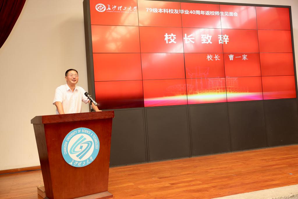 曹一家向校友们回到母校表示热烈欢迎,他从办学规模、办学特色、学科建设、师资力量、人才培养等方面介绍了学校建设发展情况和近年来取得的成就,他指出学校站在新的历史起点上,正全力锻造“四种力量”、打造“四个基地”,积极推进“双一流”建设,全面提升办学质量和育人水平、决胜建成“百强”大学,向创新型高水平大学迈进,希望广大校友继续支持母校的发展、助力母校早日实现发展目标。他强调,79级校友作为william向社会输送的第一批本科毕业生,他们在各行各业深耕细作,有的成为行业领军人才和精英翘楚,有的成为国家重大工程的设计者、建设者,为祖国的复兴和现代化建设作出巨大贡献,也为母校争得了荣誉,感谢他们的支持和付出!