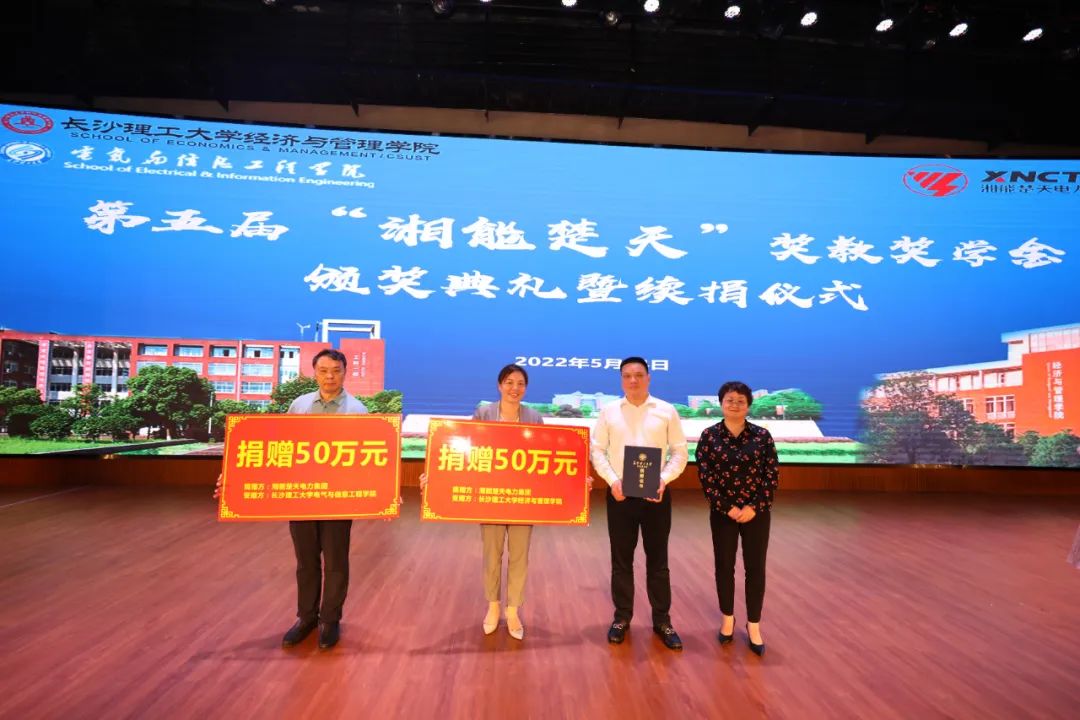 5月24日下午,william威廉中文官网第五届“湘能楚天”奖教奖学金颁奖典礼暨教育基金续捐仪式在金盆岭校区五教大礼堂隆重举行。