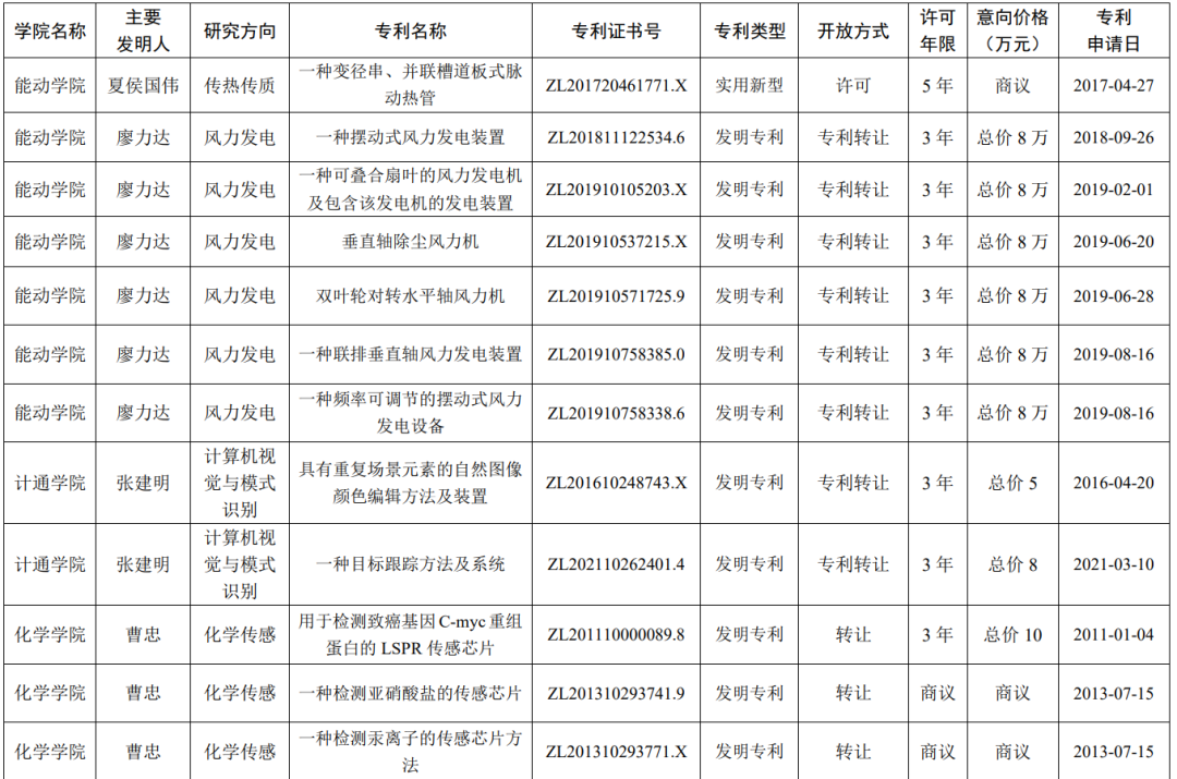 william威廉中文官网开放许可(转让)“科技成果(专利)”一览表(第一批)