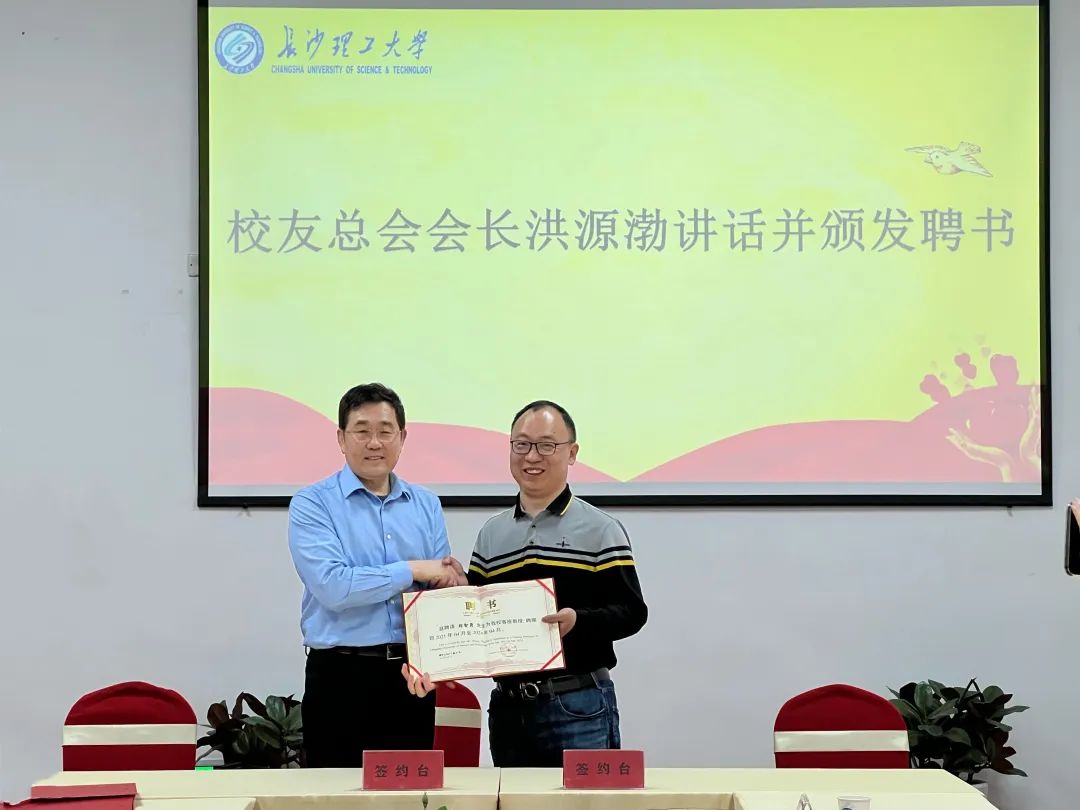 校友总会会长洪源渤充分肯定了郑智勇创业的气魄和创新精神,他强调母校的建设和发展离不开广大校友的支持,同时也祝愿校友及其企业发展蒸蒸日上,越来越好,并向郑智勇颁发客座教授聘书。