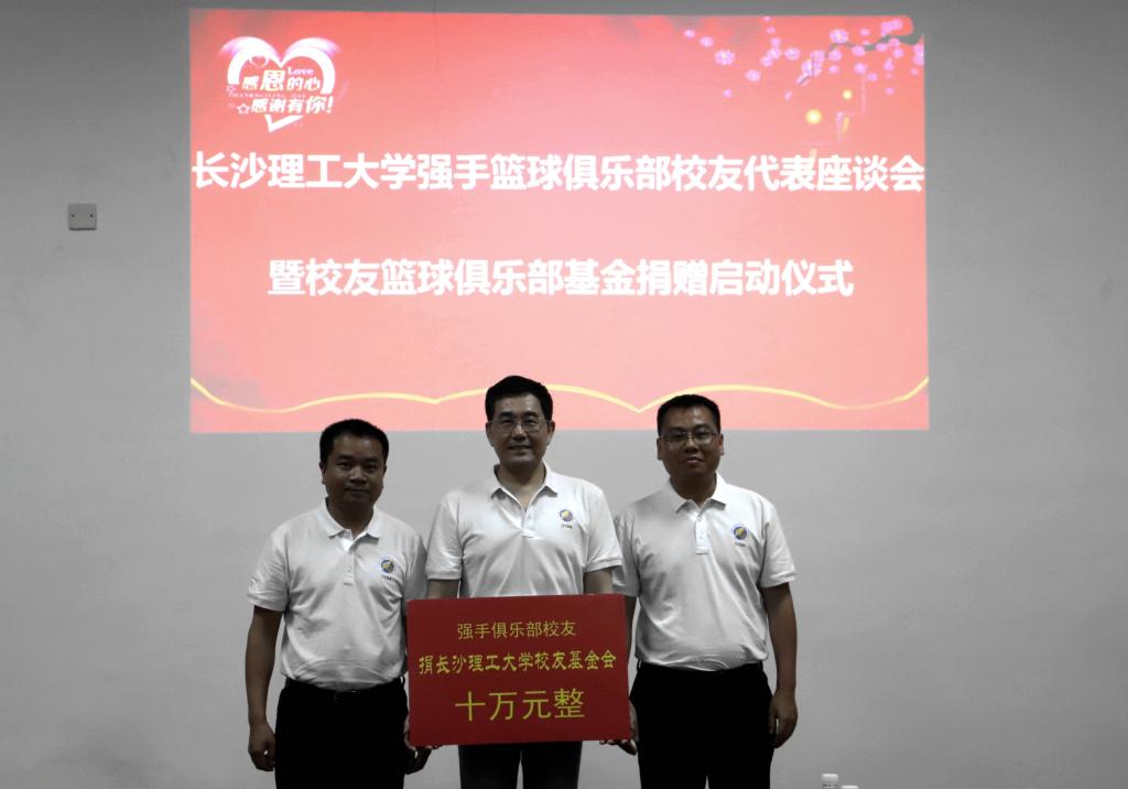 校友和企业家们捐赠了十万元俱乐部建设启动基金,用于支持强手(校友)篮球俱乐部建设和爱好运动、阳光向上的贫困大学生,校友总会会长洪源渤代表基金会接受了捐赠。