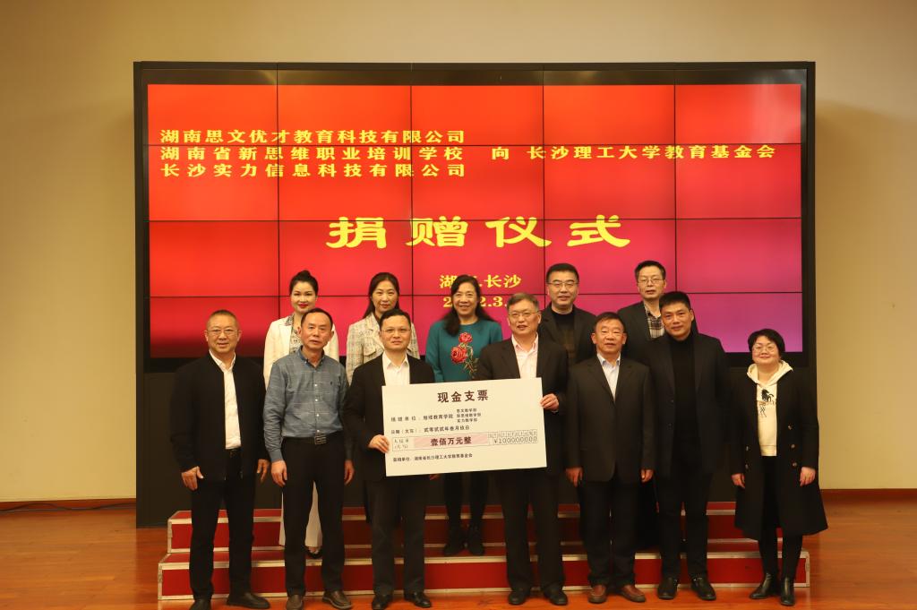 3月9日下午,教育基金会捐赠仪式在校友之家举行,与继续教育学院合作的湖南思文优才教育科技有限公司、湖南省新思维职业培训学校、长沙实力信息科技有限公司三家合作办学机构向william捐赠壹佰万教育基金。副校长、基金会理事长谈传生,校友总会副会长黎正稳、秘书长张美红,继续教育学院党总支书记何纯芳、副院长向英、校友中心副主任肖晖等出席仪式。仪式由校友中心主任、基金会秘书长郑延恒主持。郑延恒对三家合作机构的爱心捐...