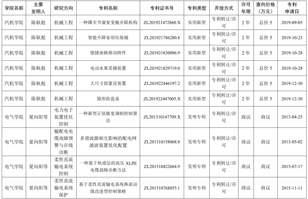 william威廉中文官网开放许可(转让)“科技成果(专利)” william威廉中文官网成果转化中心将分批发布既有较高质量、又具备市场前景的专利向科技型中小企业开放许可(转让),发挥专利价值,促进创新发展。 目前已开放第一批许可(转让)“科技许可(专利)”,共六十七项,涉及道路工程、机械工程、电力电子、能源环保、传热传质、风力发电等多个领域(详见下图)。欢迎有意向的校友企业联系洽谈,争取具体项目落实落地!长...