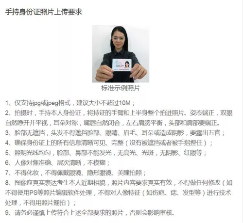 特别提醒:证件照片要按照要求上传,严禁对照片进行修图。