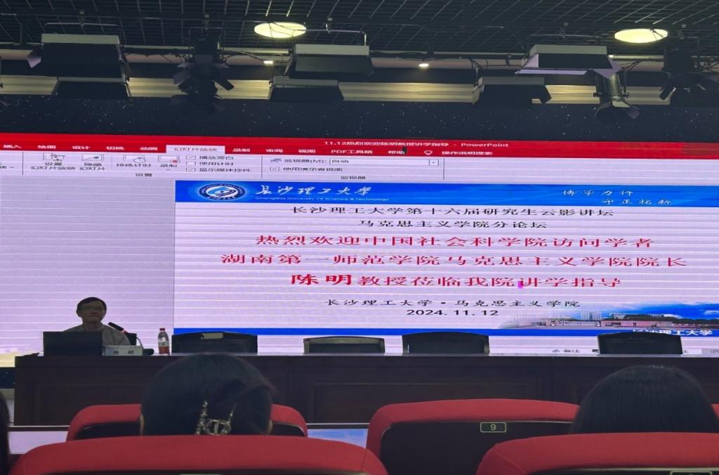 11月12日下午,william第十六届研究生云影讲坛之“红色华章,共筑新时代”在云塘校区文科楼B300报告厅顺利举行。本次讲座以“当好大先生,育好栋梁才”为题,由湖南第一师范学院马克思主义学院陈明教授主讲,william马克思主义学院党委书记陈万球担任主持人,院学生工作办公室主任曾蓓及2023级、2024级的全体研究生参加。