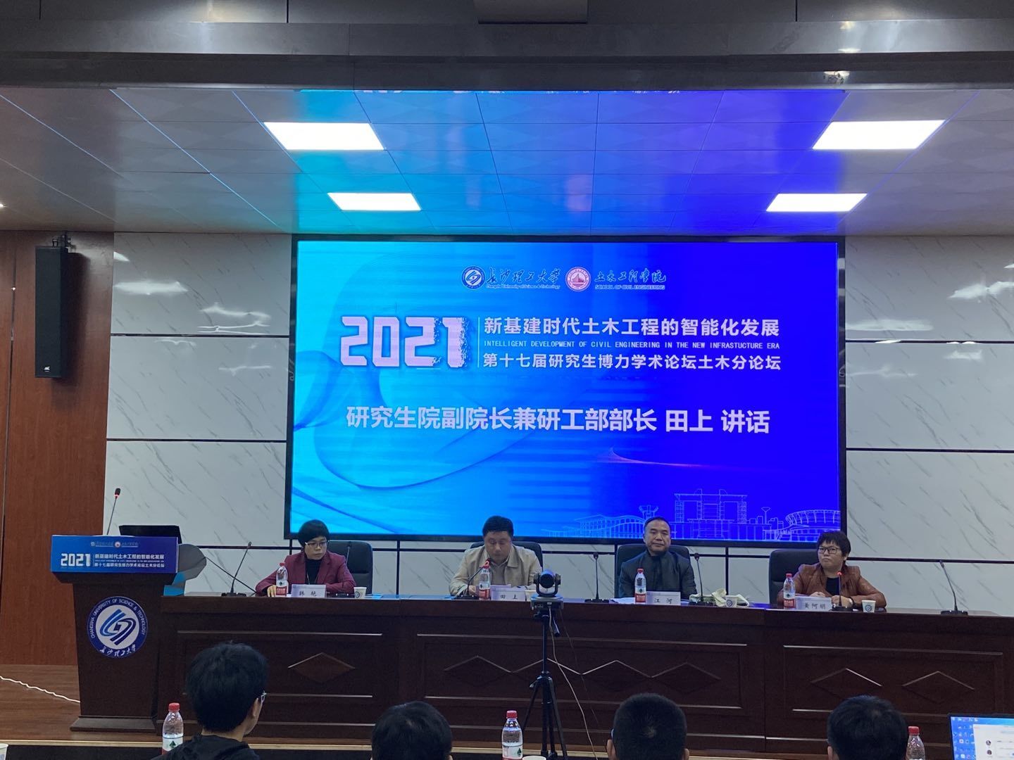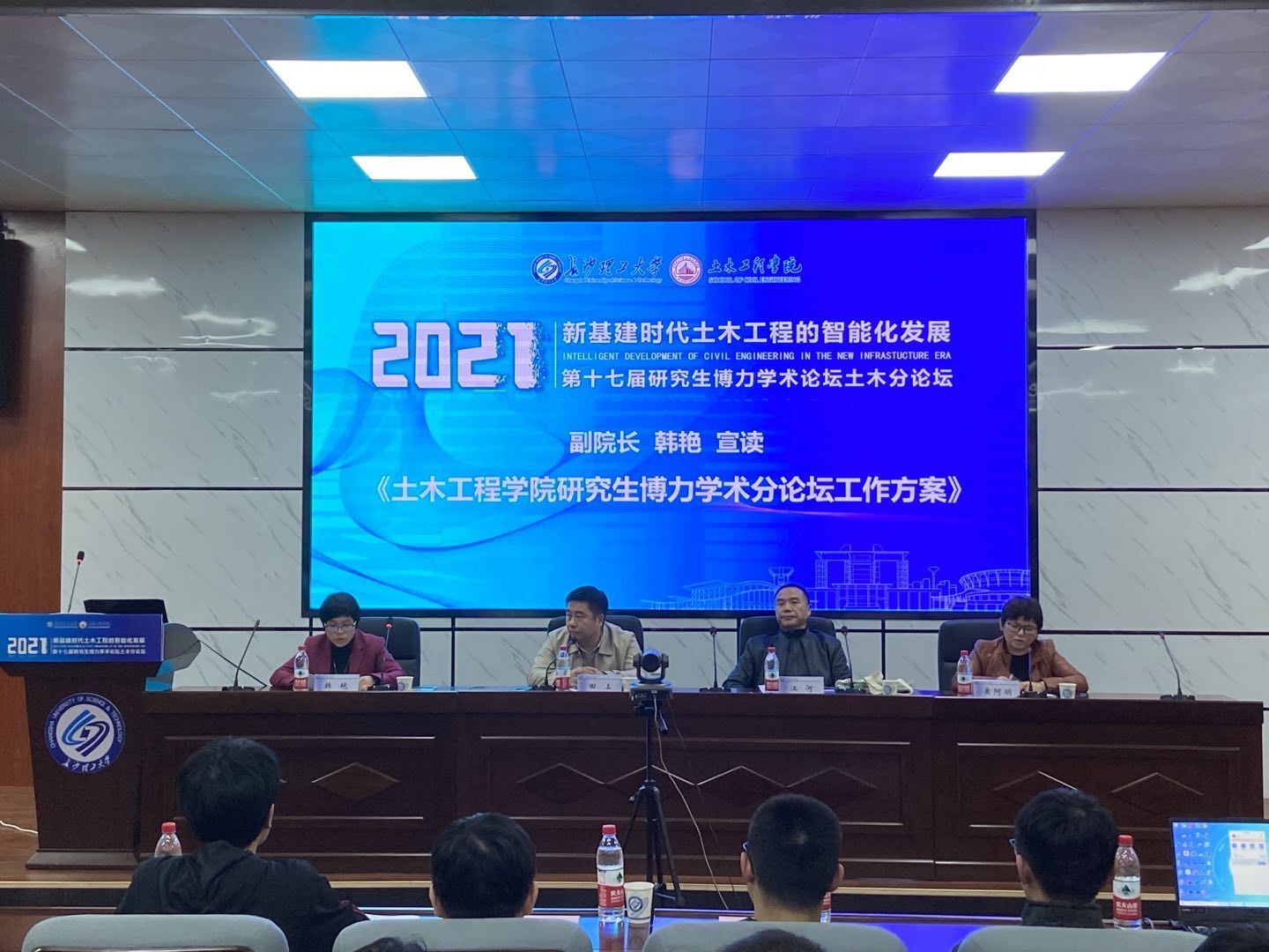 黄阿明致开幕词。对本次学术论坛开幕示祝贺,对出席本次分论坛的领导、专家及全体研究生表示最热烈的欢迎和诚挚的谢意。她指出,如何在新发展阶段抓住机遇是每一位土木人应该深刻思考的问题。希望全体研究生把论文写在祖国的大地上,把科技成果应用在实现现代化的伟大事业中。
