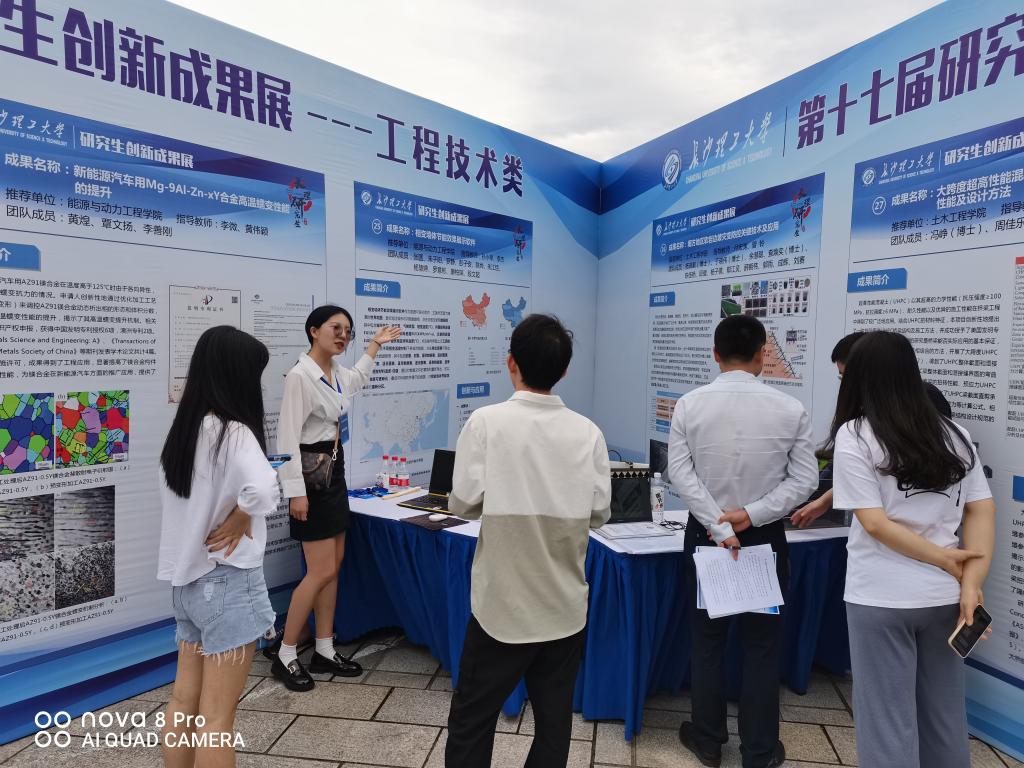 本次成果展入选团队共70支,参加研究生包括56名博士,398名硕士。展示成果分工程技术类、自然科学、人文社科艺术等三类,内容涵盖广泛,既有“创建分析理论解决南方地区软岩边坡灾变实际问题”、“综合交通运输体系优化助推中西部地区乡村振兴研究”等创造新知识,新方法的理论创新成果,又有“智能防疫机器人”、“废弃小龙虾壳提升沥青的高温性能”等为生产生活解决实际问题的实践创新成果。