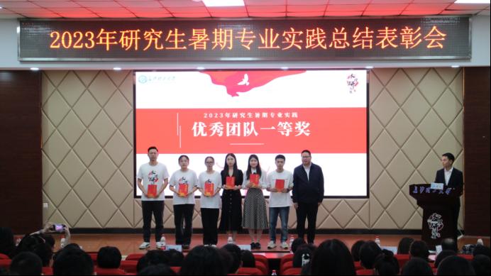 在欢快的乐曲声中,各位与会领导为30支暑期实践优秀团队颁布奖项。本次表彰大会共诞生了6支一等奖团队、9支二等奖团队和15支三等奖团队,获得优秀团队一等奖的6支团队依次上台分享他们的实践成果,丰富的成果和精心的演讲收获了现场的阵阵掌声。