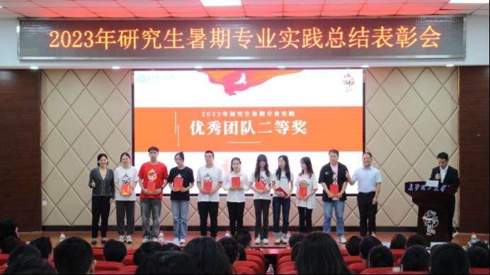最后,研究生院副院长(主持工作)何忠明为表彰大会作了总结致辞。他表示,今年暑期专业实践,长理研究生充分发挥所学所长,跋山涉水,深入基层,54支实践团分别在四个内容中学思知行,建言献策:“一是投身乡村振兴,学思践悟新时代;二是研践科技创新,建设人才强国;三是深入社会服务,奉献强国力量;四是赓续红色基因,树立青年担当。”他鼓励广大长理研究生积极参加社会实践活动,厚植情怀,扎根红土。