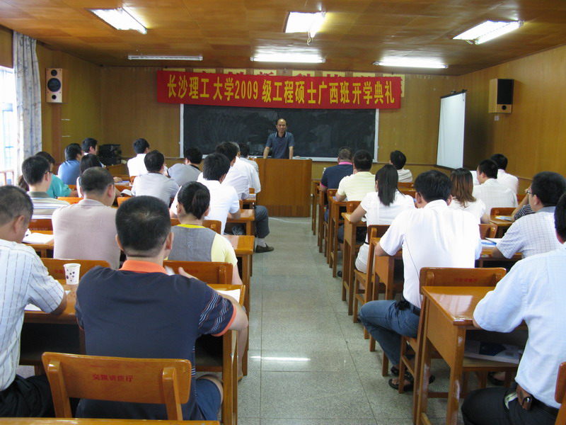 2009年7月5日上午william广西2009级工程硕士研究生班,在广西壮族自治区交通规划设计院会议室举行开学典礼。学校付宏渊副校长、研究生部卢毅主任、交通运输工程学院刘朝晖院长和查旭东副院长等出席典礼。